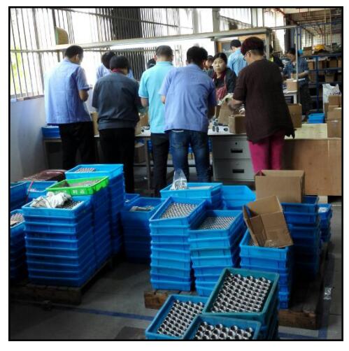 Quality controllers were testing the mechanical parts.